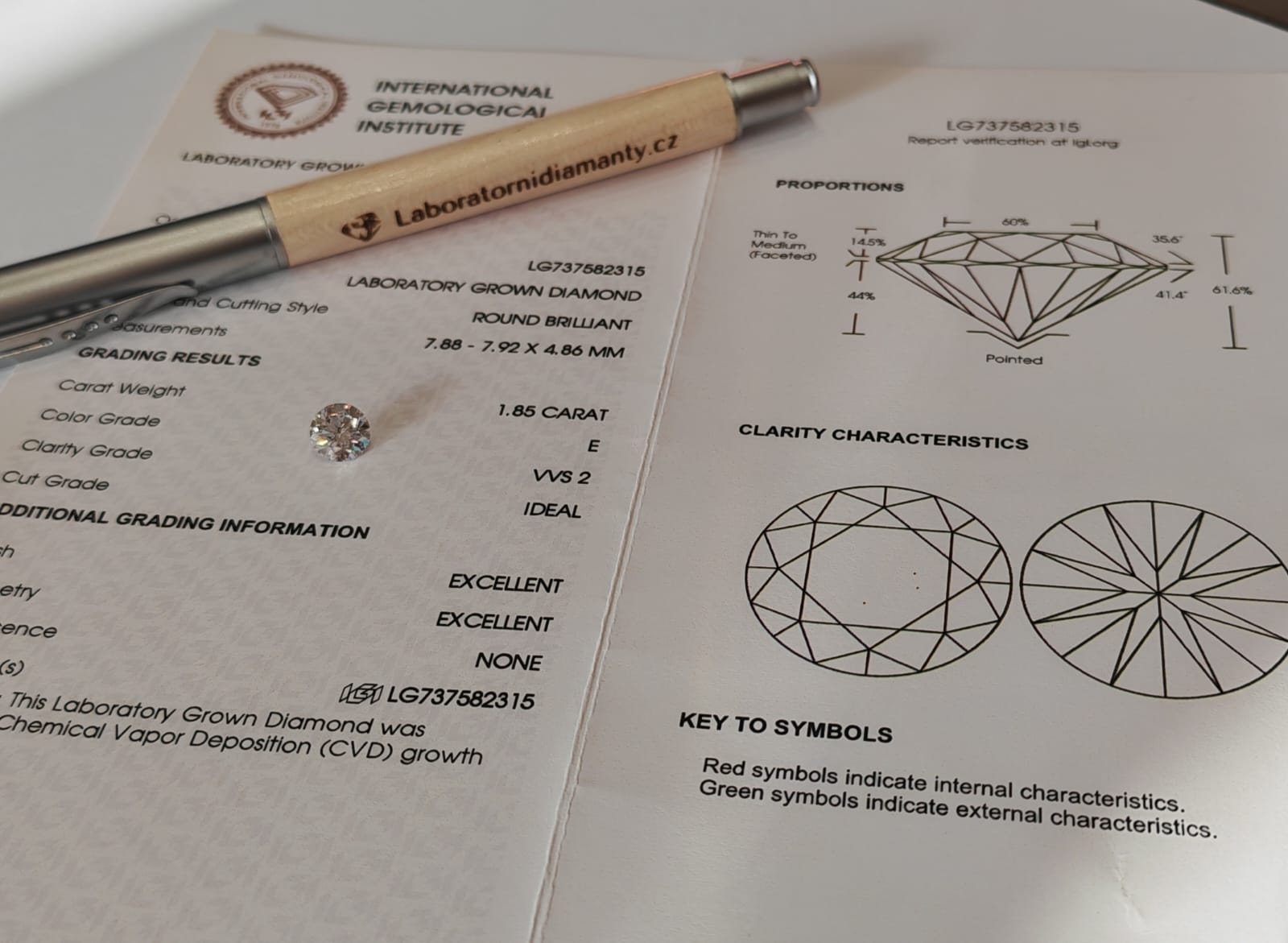 Laboratorní diamant 1.85ct E barva | VVS2 čistota – skladem