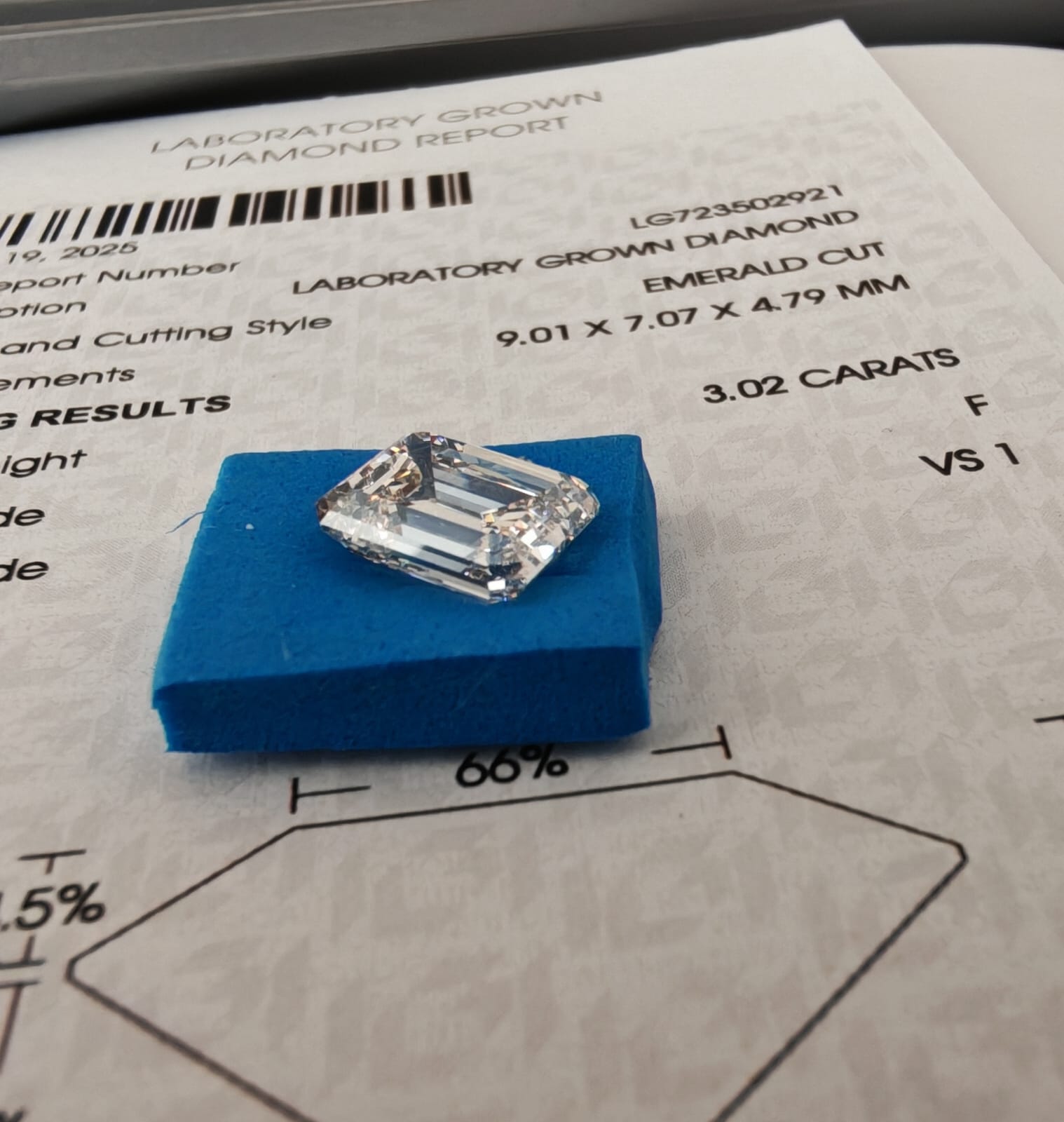 Barva: F | Čistota: VS1 | Brus: Excellent | Metoda růstu: CVD